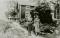 | Helmi, född Björklund på Mobacken, med sin dotter Doris f 1937 i vagnen. I bakgrunden "Jannes-Arvidas" gård med uthus. | |