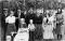 | Fotografi av en skara människor vid en stuga vid vattnet i Bolot i Tölby. | |