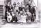 | Söndagsskolbarn med ledare samlade på skolans trappa. | |