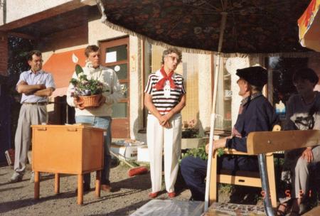 | 99-åriga Johannes Påfs ( född 15.5.1894, dog 26.8.1993) uppvaktas med blommor vid en ceremoni vid byabutiken år 1993. | 21.5.1995 |