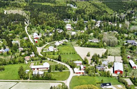Centrum av Tölby fotograferad en sommardag av en drönare.