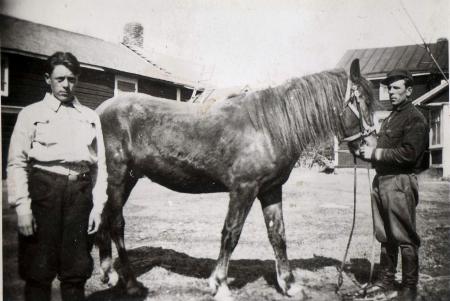 Bilden tagen på "Villis gård" i Tölby, Runars hemgård. Till vänster Birger Nedergård f. 1925, Runars systerson från Munsmo.