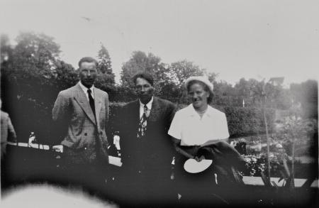 På fotot Evald Vesterlund som flankeras av John och Etel Thölix, Evalds hustru Ines tog fotografiet. Resen företogs med Evalds bil och paret besökte bl.a. Tölbyättlingar i Kyrkslätt. Veterligen är dessa de enda Tölby bybor som besökte OS år 1952 i Helsingfors.