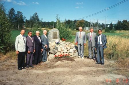 Minnesmärket restes på platsen där bönehuset stod mellan åren 1887 till 1966. I bild från vänster Olav Englund, Folke Smeds, Rafael Edström, Alvar Edström, Arne Herberts, Roger Thölix och Paul Johansson.